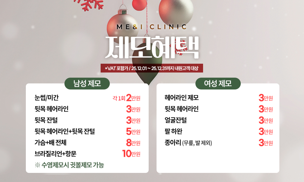 겨드랑이 1회 : 20,000원  배 전체 1회 : 50,000원