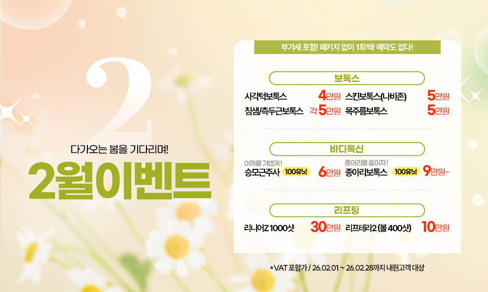 겨드랑이 1회 : 20,000원  팔하완(손포함) 1회 : 50,000원
