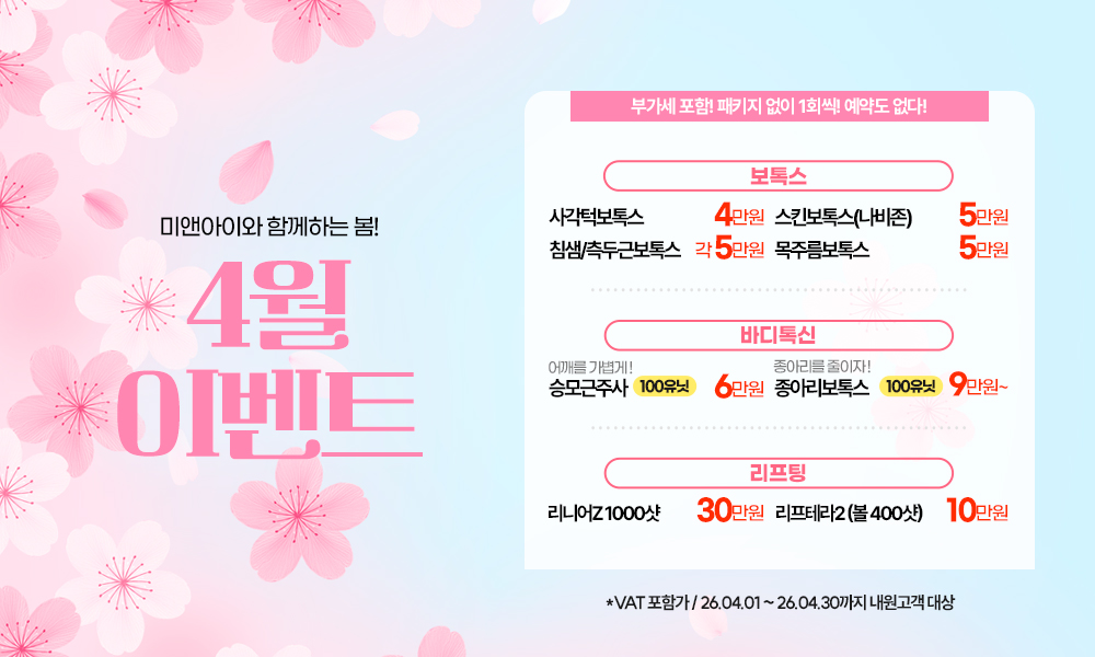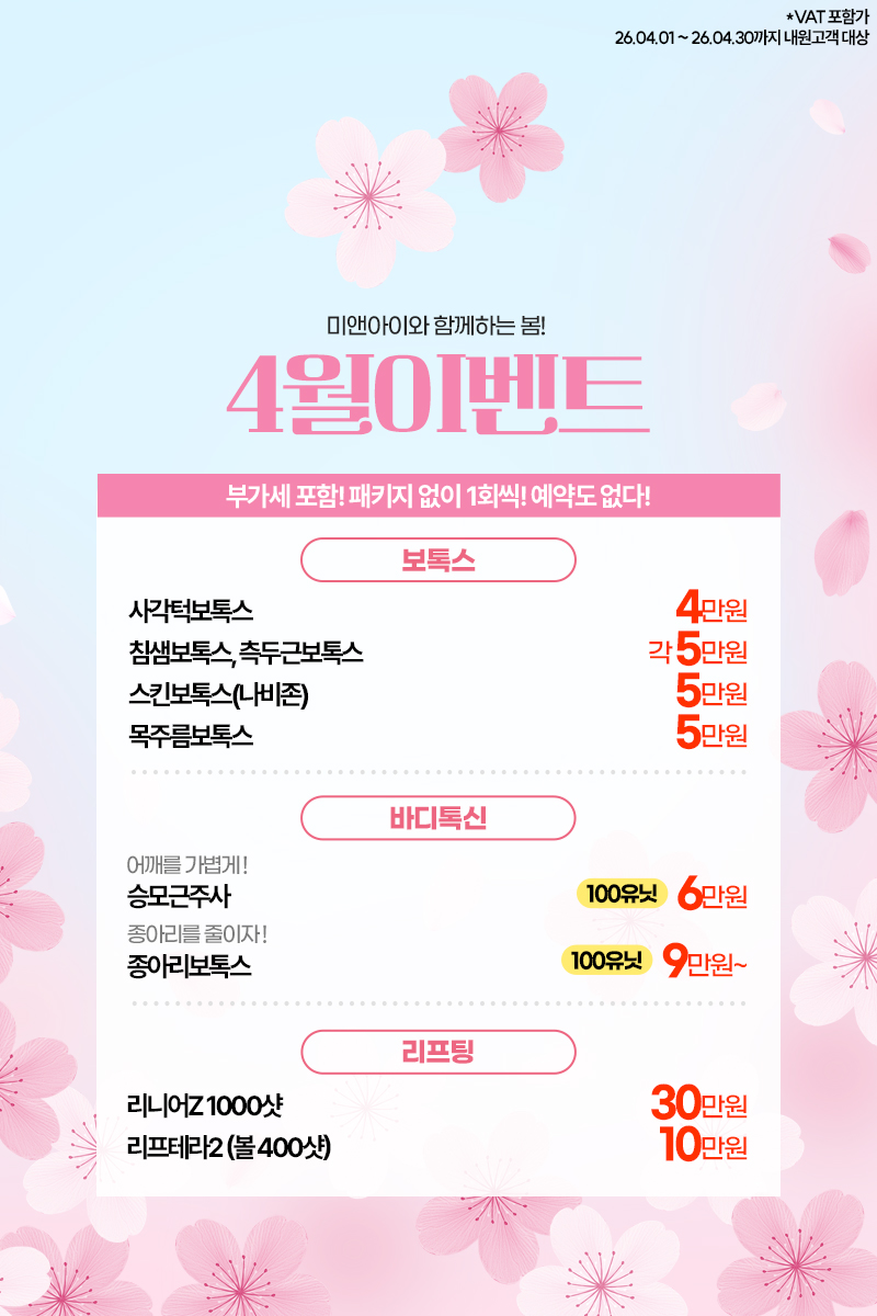 겨드랑이 1회 : 20,000원  배 전체 1회 : 50,000원