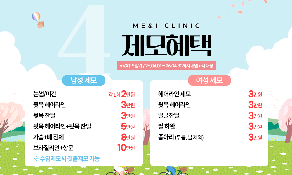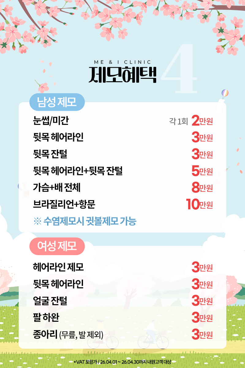 (여성 브라질리언, 항문, 비키니, 가슴 제모는 안됩니다.)